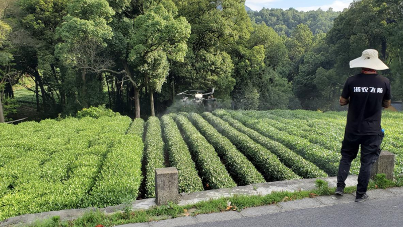 同時,浙農飛防持續(xù)拓展服務功能,除了在大田糧油作物上的應用,公司近年來在茶樹、香榧等經(jīng)濟作物上開展的飛防服務也頗受種植戶歡迎,浙農飛防同時還深度參與了相關技術規(guī)范規(guī)程的標準制定工作。前期,浙農飛防連續(xù)中標西湖、淳安等地茶葉統(tǒng)防統(tǒng)治項目及諸暨稽東香榧無人機授粉項目,有效實現(xiàn)了為作物增產提質。“像在香榧上,無人機高空噴霧噴灑的方式基本上能夠做到精準的全株授粉,在茶葉上則能做到均勻著藥著肥,前期我們還運用無人機幫助茶農吊運茶青,大大節(jié)省了人力,可以說無人機作業(yè)的優(yōu)勢非常明顯。”浙農飛防團隊負責人王廣源這樣說。
