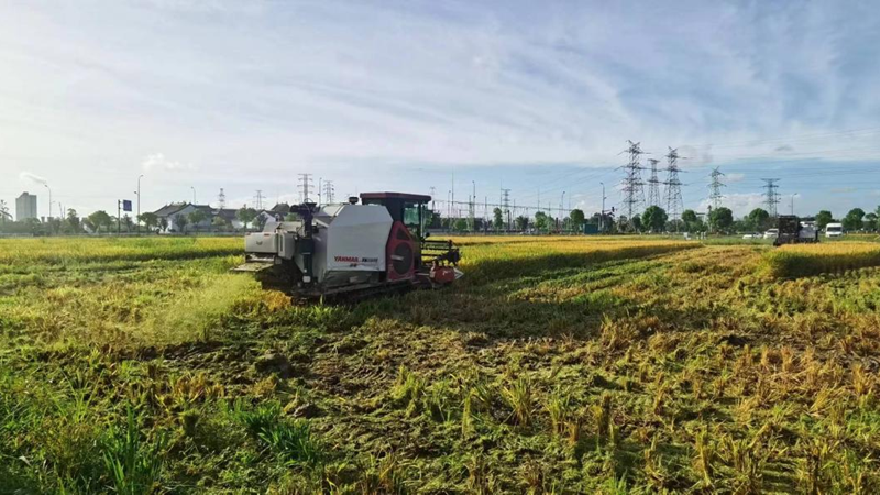 走進臺州市椒江區(qū)洪家場浦綠廊示范區(qū),處處彌漫著稻谷的清香。沉甸甸的水稻彎下了腰,微風吹過,一陣陣稻海輕輕搖動,泛起了層層波浪;田間收割機來回穿梭,將粒粒飽滿的水稻盡數(shù)收入“囊中”。這是由浙農(nóng)科技承接運營的椒江區(qū)洪家街道等四個街道全域土地綜合整治項目一期示范區(qū)內(nèi)的豐收景象。